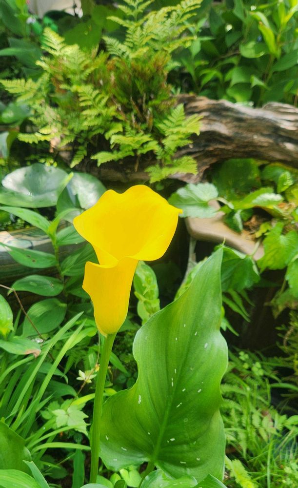 回りの和風の植物の中にふつりあいな程の鮮やかな元気カラーです。