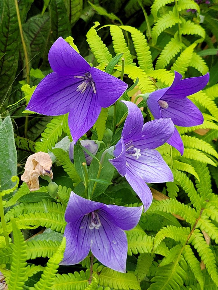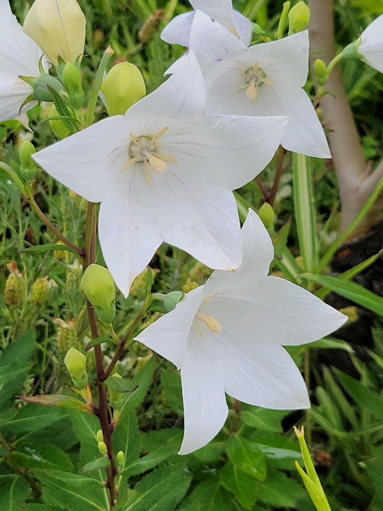 キキョウ(桔梗)が3色、爽やかに咲いていました。
