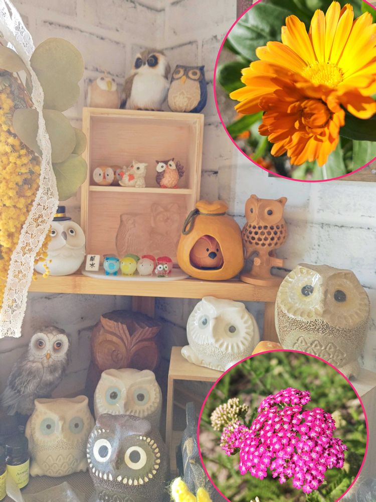 沢山、可愛いフクロウ🦉をお持ちですね。◕‿◕。 キンセンカ…双子👯ちゃん…!