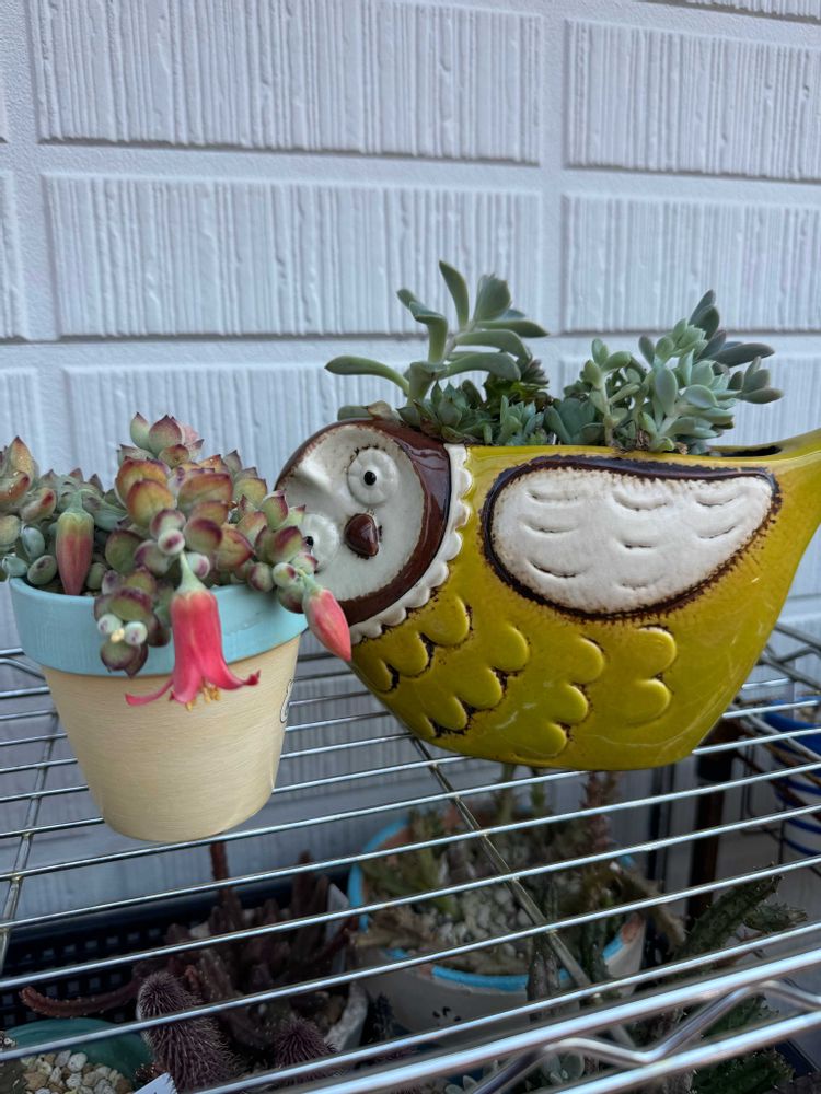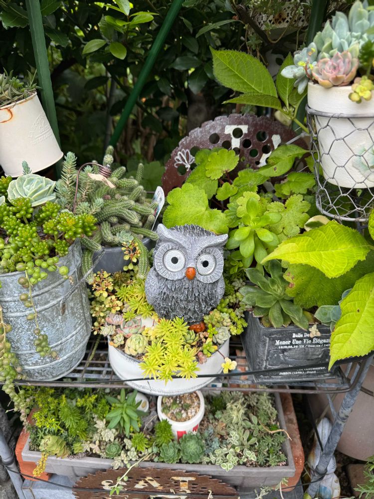 そしてセダムに囲まれたフクロウ🦉ちゃん嬉しそうです🦉