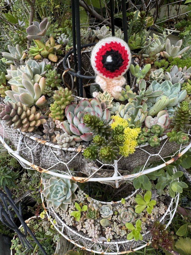 ②多肉タワーとけいこさんの編み編みオヤジさん