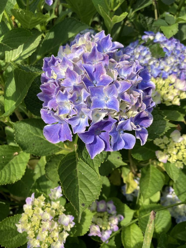 庭の紫陽花が色付いてきました。紫色が綺麗です。装飾花の白い縁取りも良いですね。