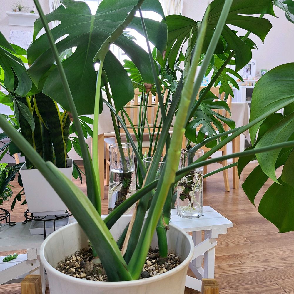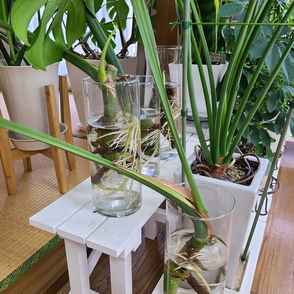 今年も水挿しで増やしてるモンステラ🌱そろそろ土植えしなきゃいけないかな。