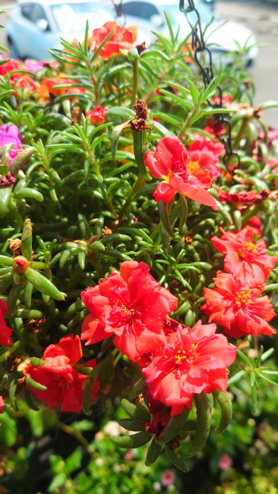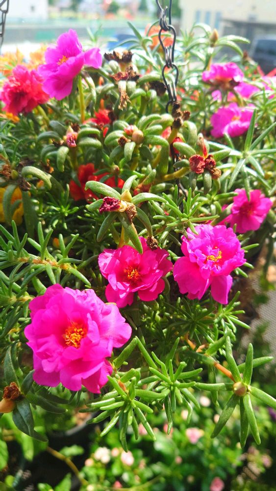 日中開花している時間が長く、午後になっても花が閉じにくい性質が特徴のマツバボタンです。水切れと暑さに強いので毎年、ハンギングで育ててますt