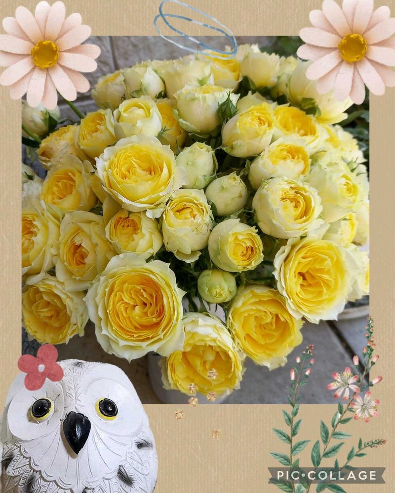 レモンイエロー🍋のブーケ💐をフクロウちゃんと共に•*¨*•.¸¸☆*・゚🦉