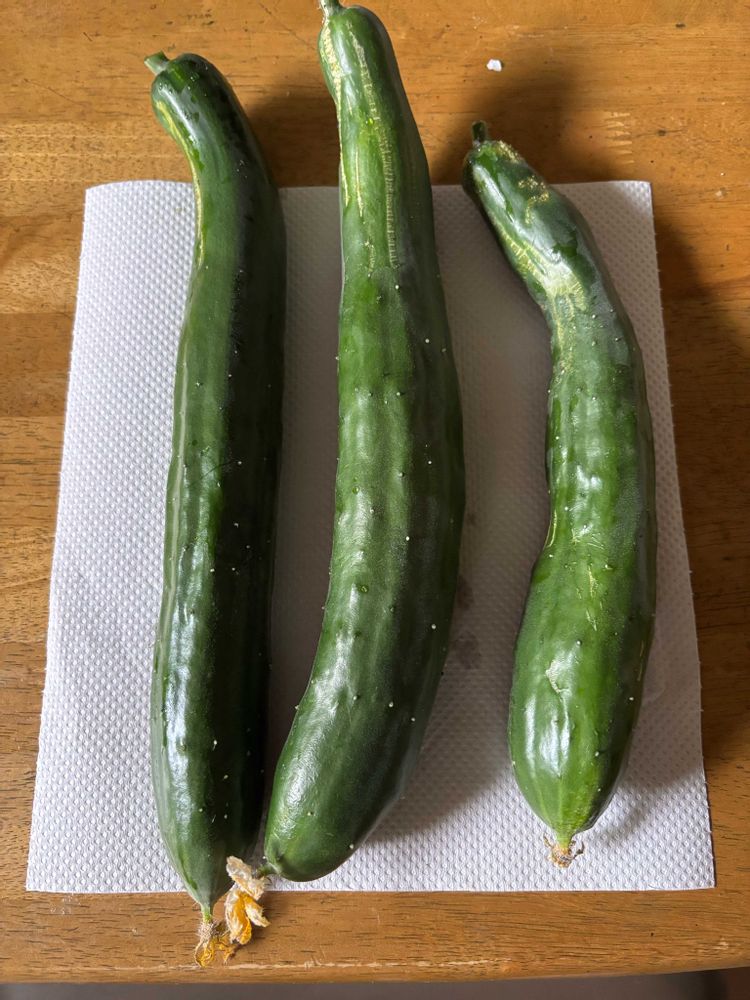 畑で作っているキュウリ、形は悪くてもみずみずしくて美味しいですよね。時期の野菜‥…果物美味しい