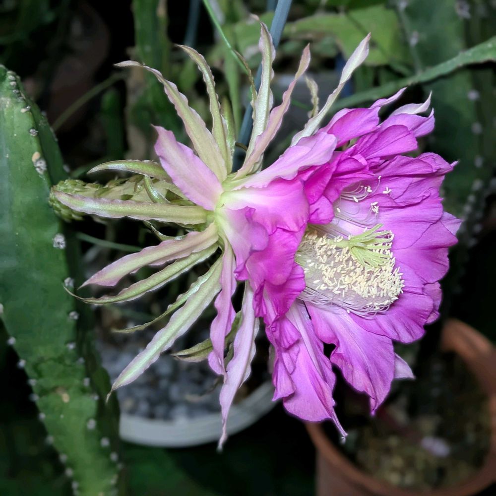 2015年にサボテンが花咲くことを知り、自分で買ってきたダイソーサボテンが次の年に咲いたのをきっかけに、どはまりしてます😅