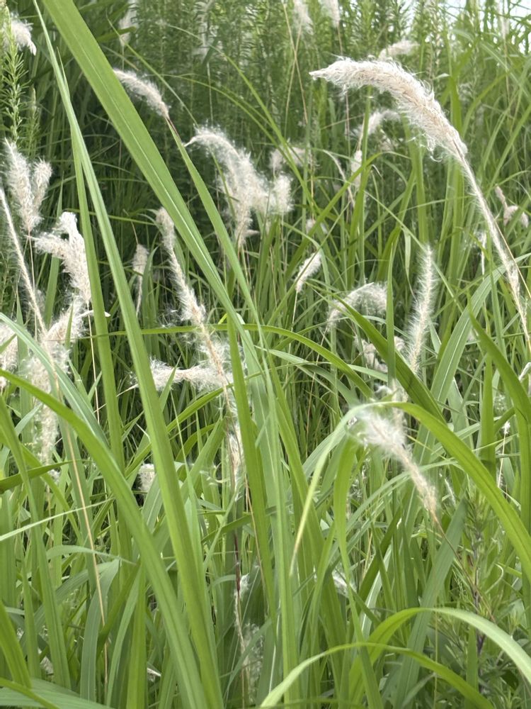 5️⃣印旛沼のサイクリングロードから土手を見ると、一面のチガヤ。