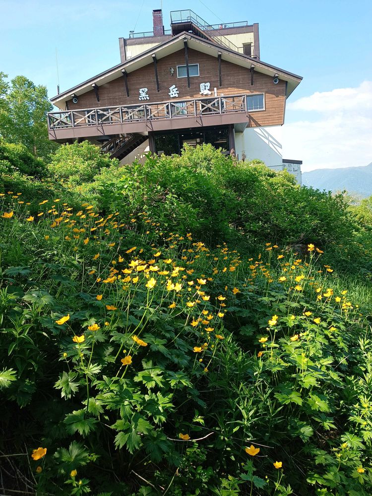 ロープウェイから降りたところに黄色いお花が群生してました。