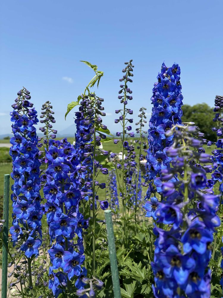 青い空に羊蹄山。お花がたくさん咲いていて嬉しい休日。しらかばの木陰でひと休み😊