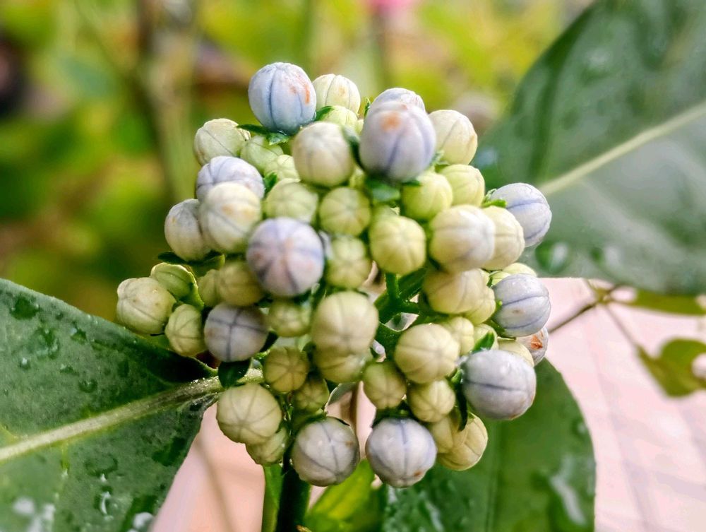 ✤定山(常緑)アジサイ「碧の瞳」もシベを見せ始めてくれました🔵🌿