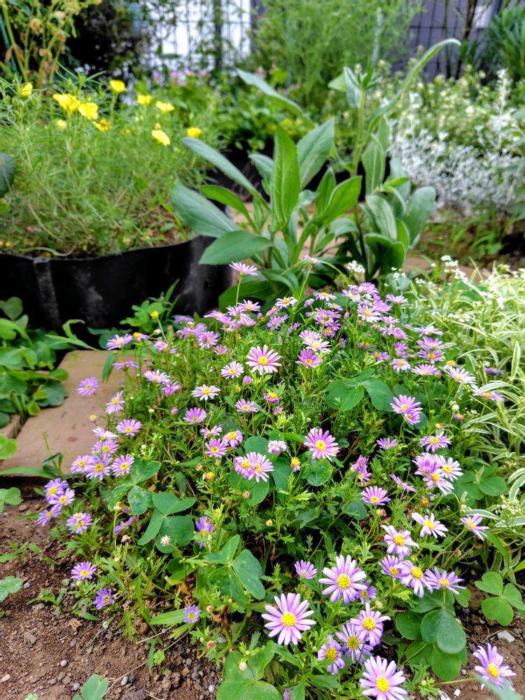 ①春に切り戻したブラキカムがこんなに復活したと思ったらたった数日で花終わり。