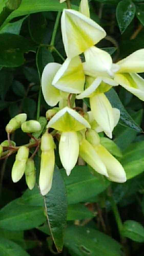 南天の木に、絡まって咲いてます。蔓で白い藤の花にそっくりです。