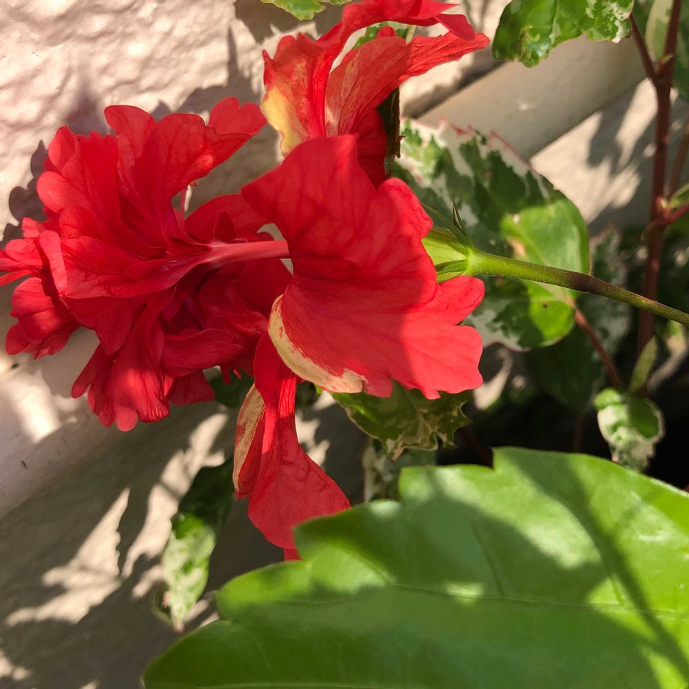 やっと、斑入りハイビスカスフラミンゴ🌺𓈒𓏸咲いてくれました。