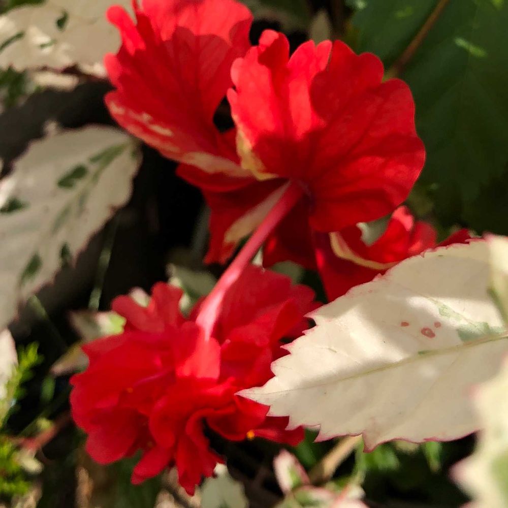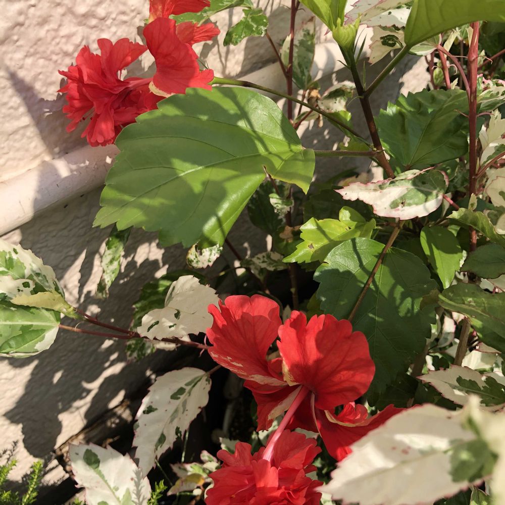 お花は赤くても、葉っぱが斑入りだと涼しげですね🥰💕