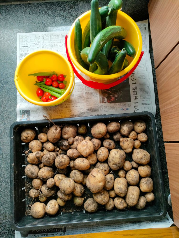 3センチくらのジャガイモキタアカリ 芽が出てしまった8個。植えたらこんなに、できました。
