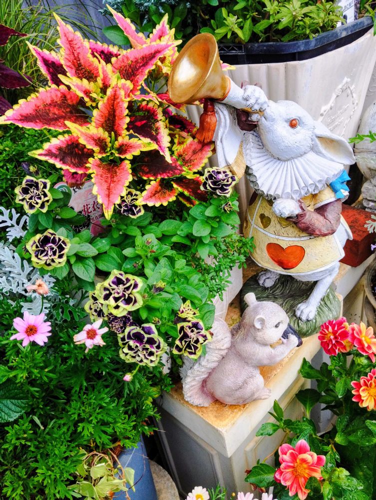 素敵なコメント有難うございます。不思議の国のアリスの世界観が好きで庭のあちこちに置物を飾って楽しんでます🥰