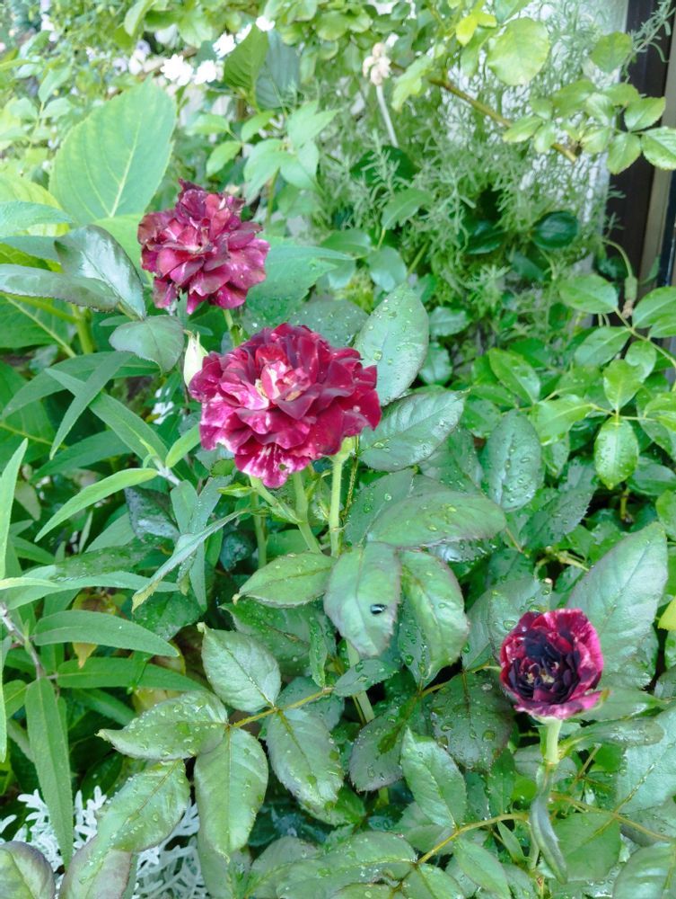 ❺薔薇パープルタイガーの2番花が咲きましたが暑い時の薔薇は花が小さく綺麗では無いので撮影後、カットしました🌿