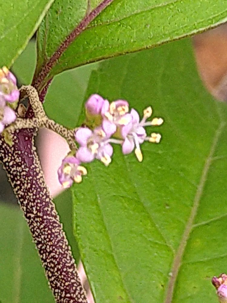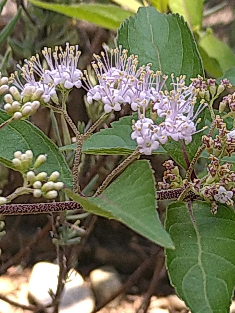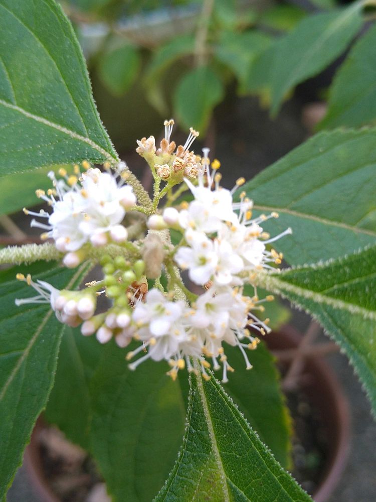 ①②白くてふさふさしてる花を見つけて、何だろ〜と近くに行ったら、ムラサキシキブ白い花が咲いていました🥰