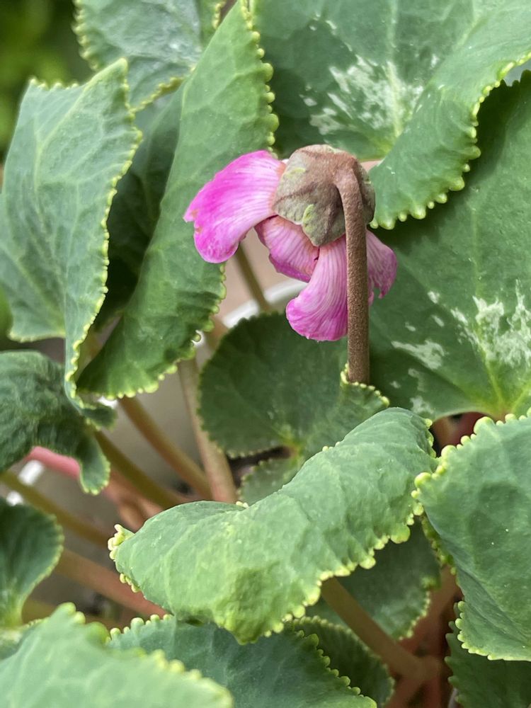 シクラメン花が終わり葉っぱきれかったので金木犀の木の下に置いとくとピンクのお花が庭パトの時見つけました🩷