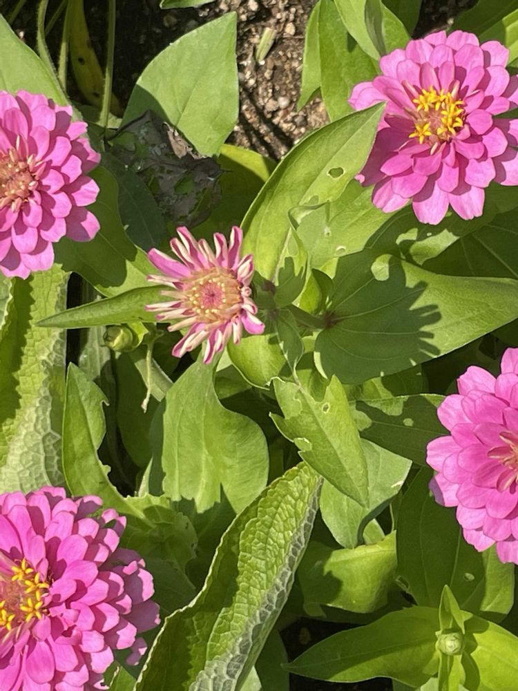 百日草ピンク 黄色も咲き出しました カラフルで夏のお花元気もらいますねぇ〜