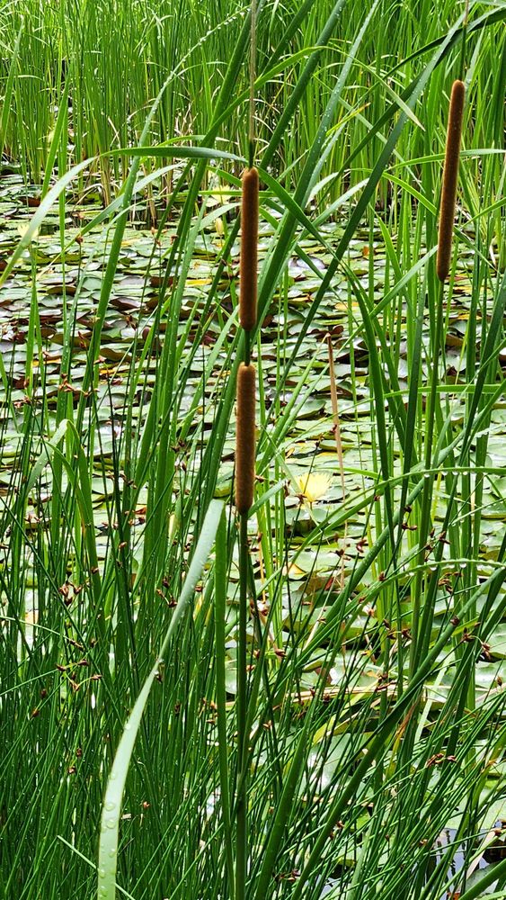 1️⃣睡蓮の蕾が顔を出した水面には、ゆらゆらと揺れるガマの影が美しく映えます。🎵