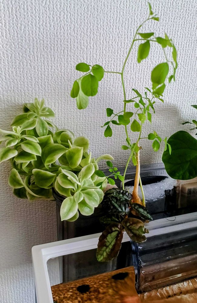 モリンガ、ジップロックに入れた水苔の中に種を入れて放置して芽が出たコを育てたのですが、