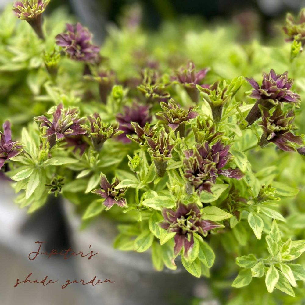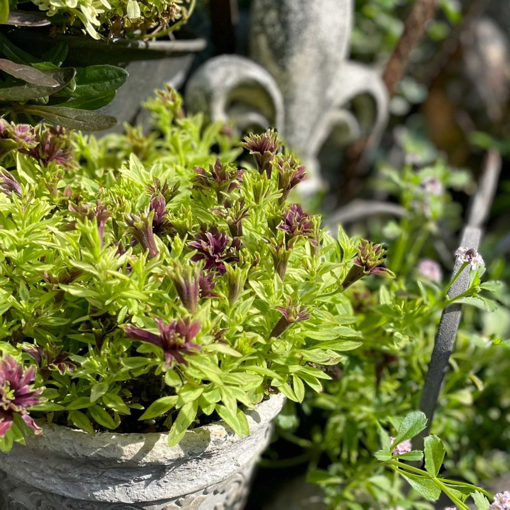 こちらは家にもあります♪ペチュニアどうも上手く行かず…購入しないでいましたが斑入りの葉っぱと、この花の色が気に入りました。今年は雨が少ないからか元気です✨✨