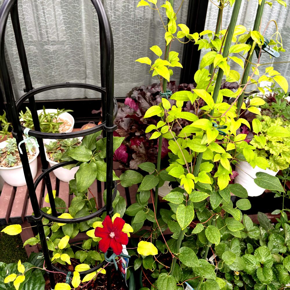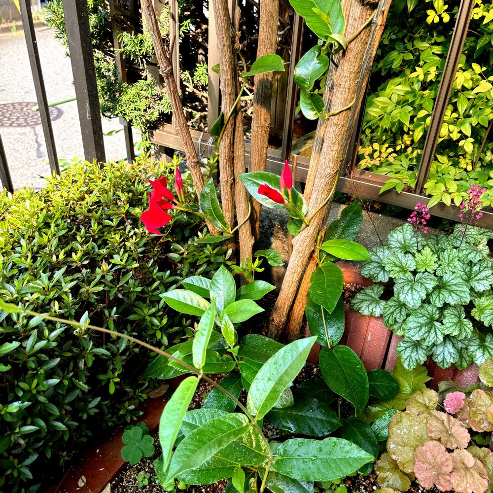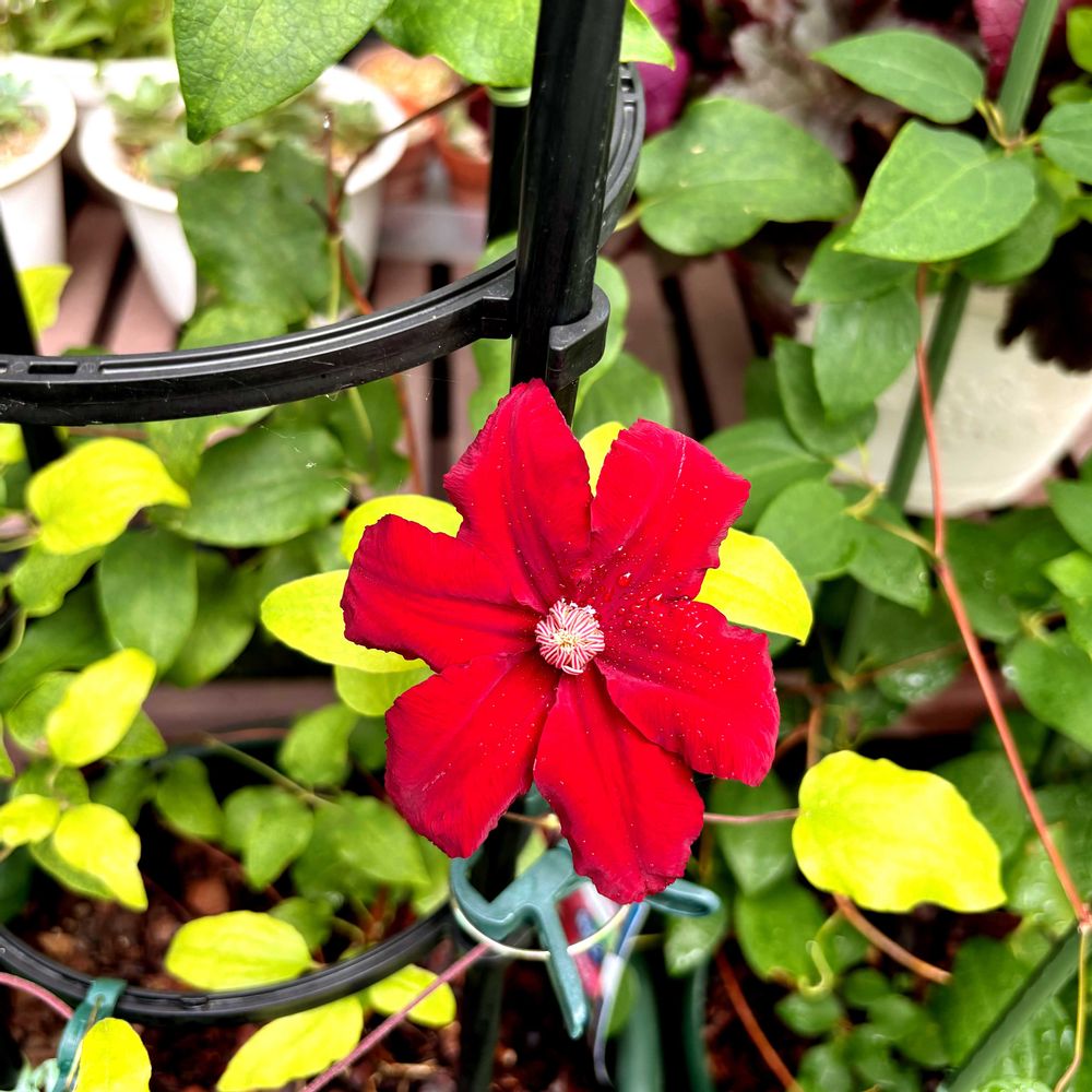 2番花?🌸🍃というのかな?一度花が終わって半分位に剪定した後の真っ赤なクレマチスレベッカです