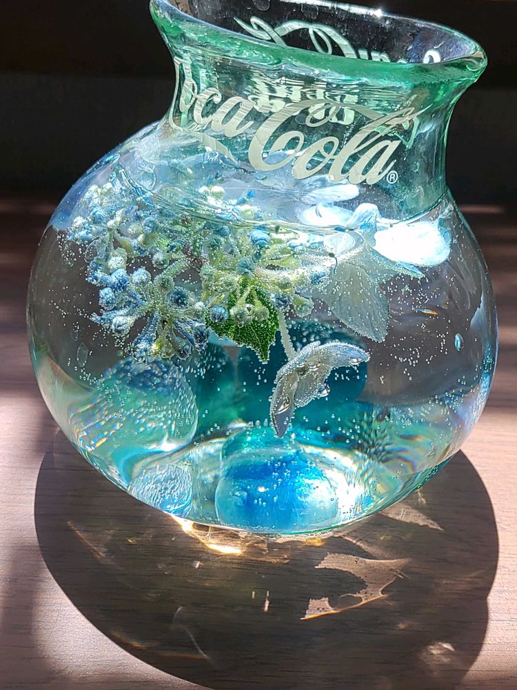 コカコーラの水槽の中、アジサイが魚のように泳いでます。瓶の影が迫力があってゾクゾクしました。