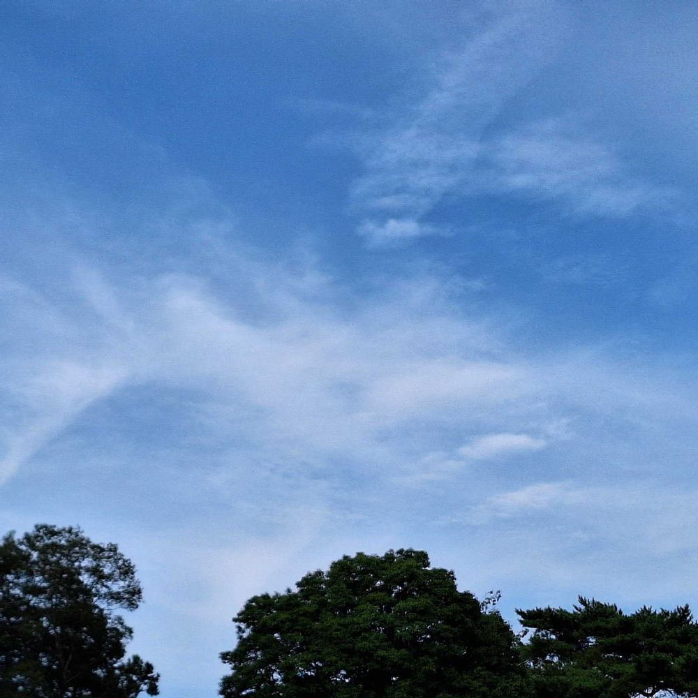 前の日の土曜日にテニスをしてる時に見上げた空にも最初は細長い直線だった飛行機雲がしばらく経つと龍の身体のように見えてきて不思議な感じがしました😃