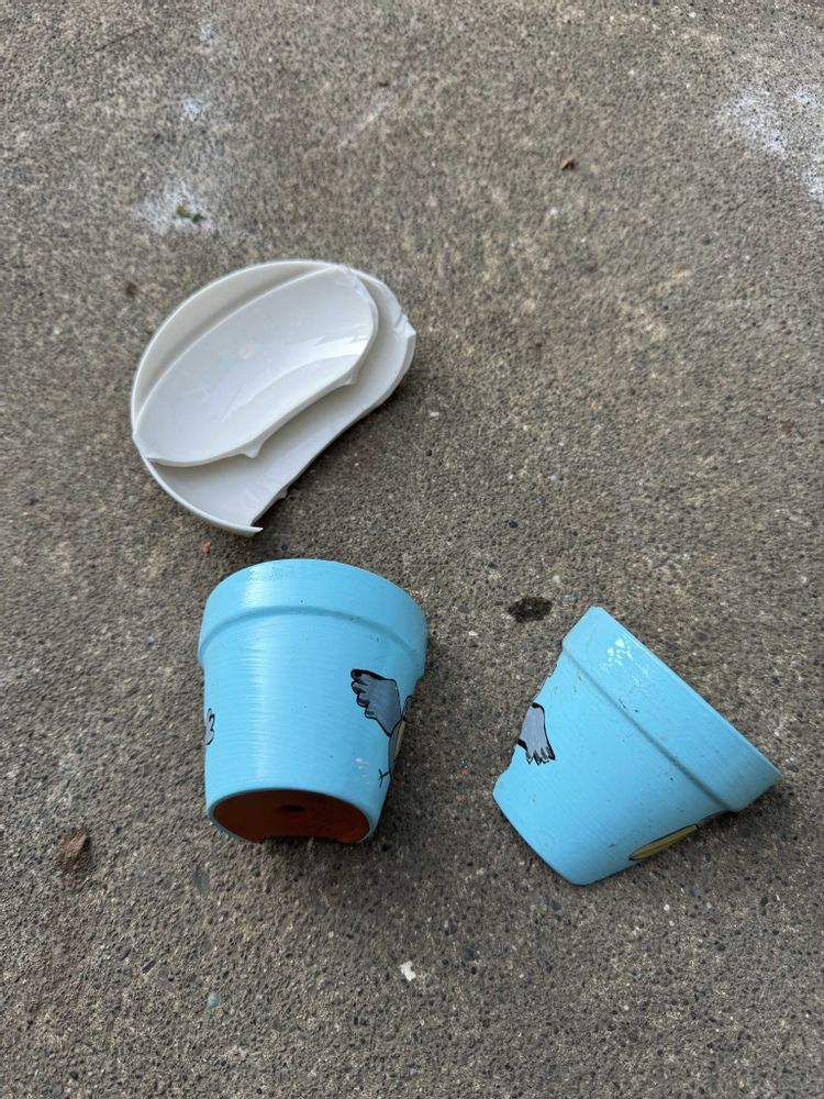 ニス塗りをしていて④のリメ鉢を割ってしまって…ガーン😨