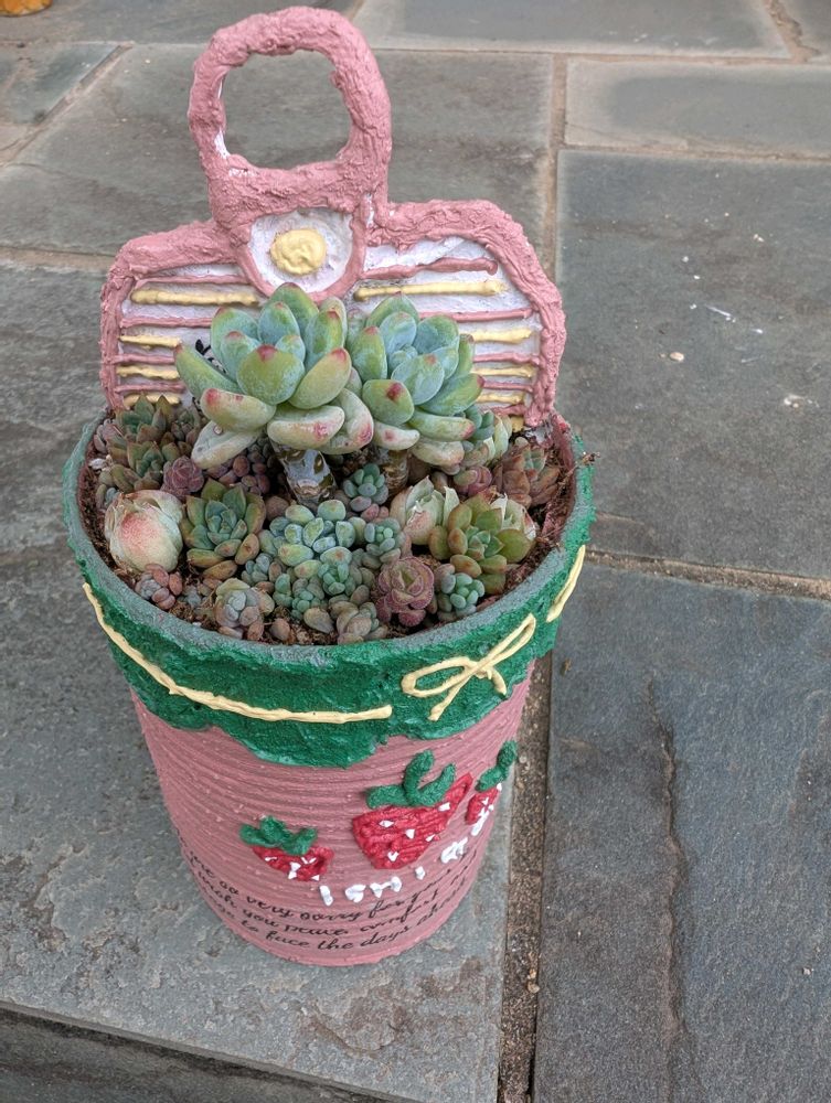 ウッドプランターの苗こちらのリメ缶へ仕立て直し🙃