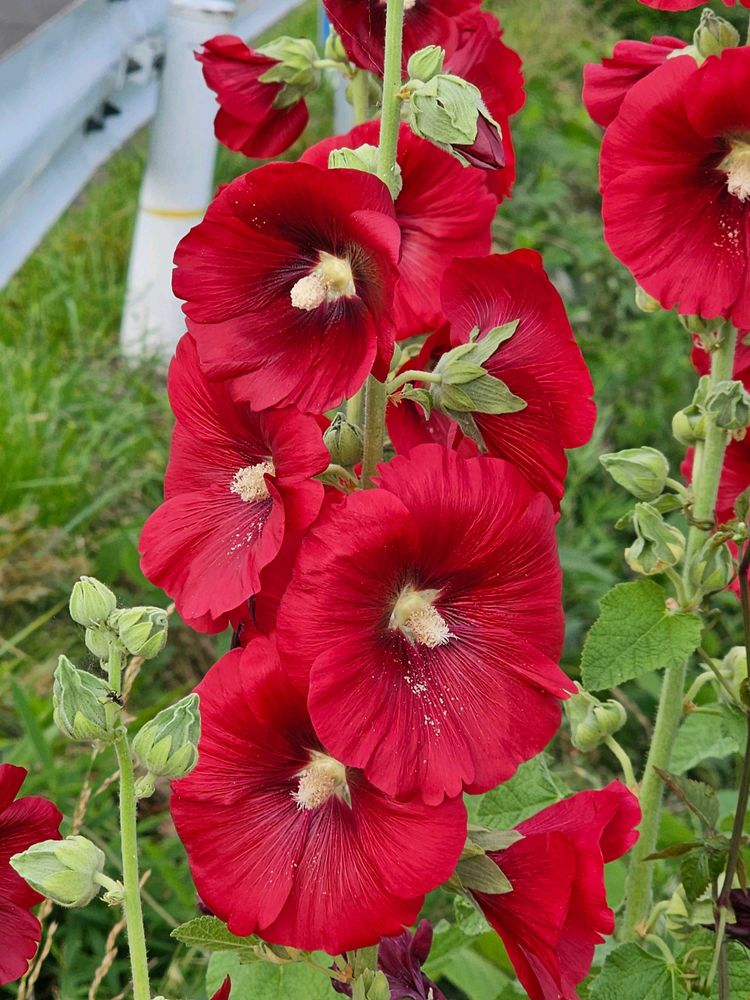 タチアオイ、土手に咲いてるんですね!可愛らしい赤色。