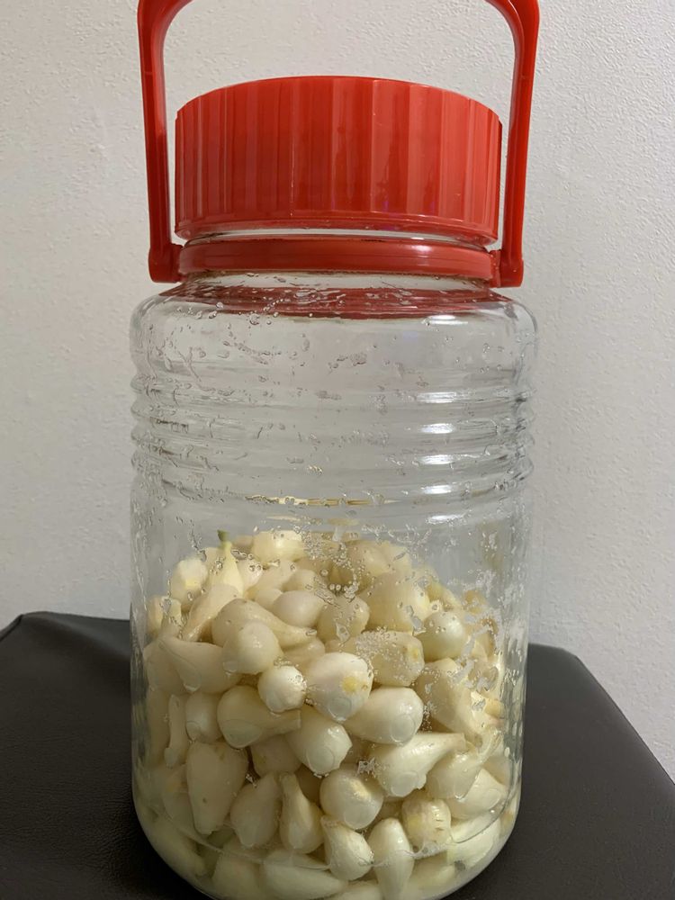①これからローズマリーをすいて風通し良くします ②これからグレコマをすいて水切れしない様にします ⑤ラッキョウを頂いたので塩漬けにしました