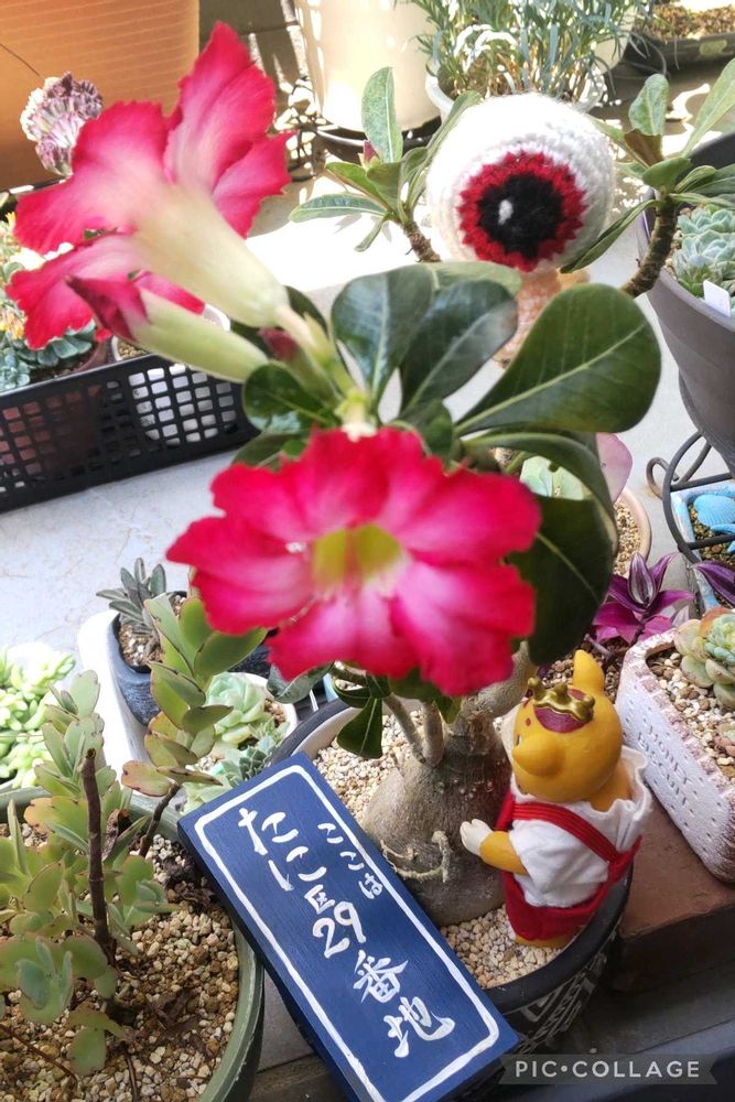 1枚目は、昨日、2つ目のアデニウムの花が咲きました。残念ながら、やはり野に置け一重です😭