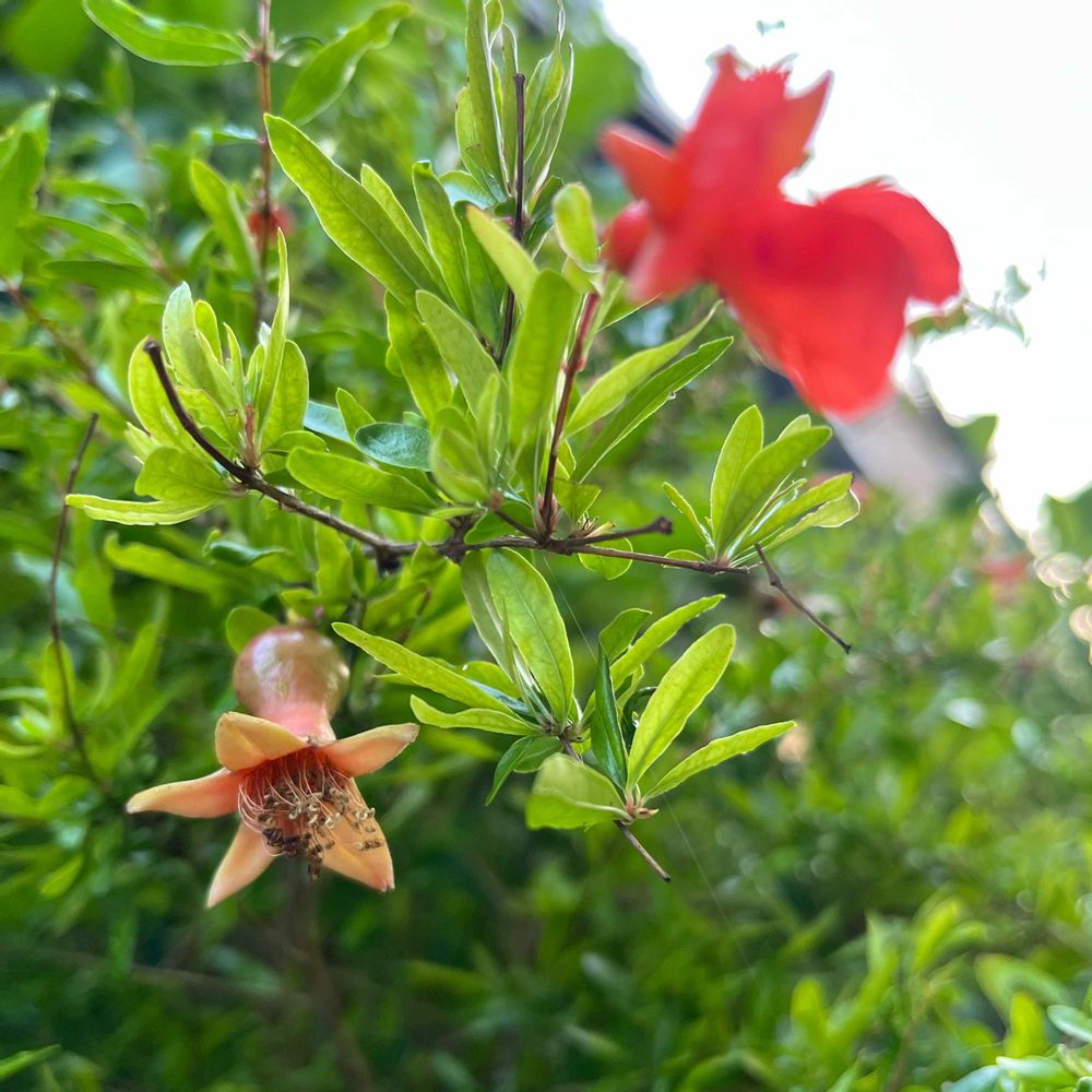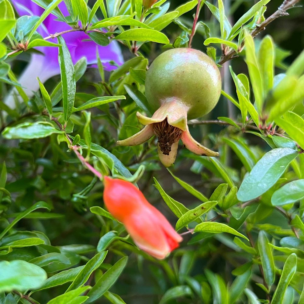 ①,② 我が家のは背丈6,70cmのハナザクロです。ちょうど今、お花と実が同時に見られます