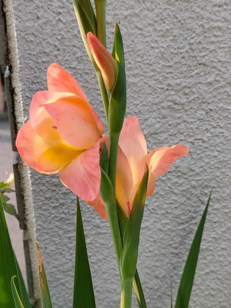 優しい色のグラジオラス。ご近所の花友さんから。これも初めて育てます