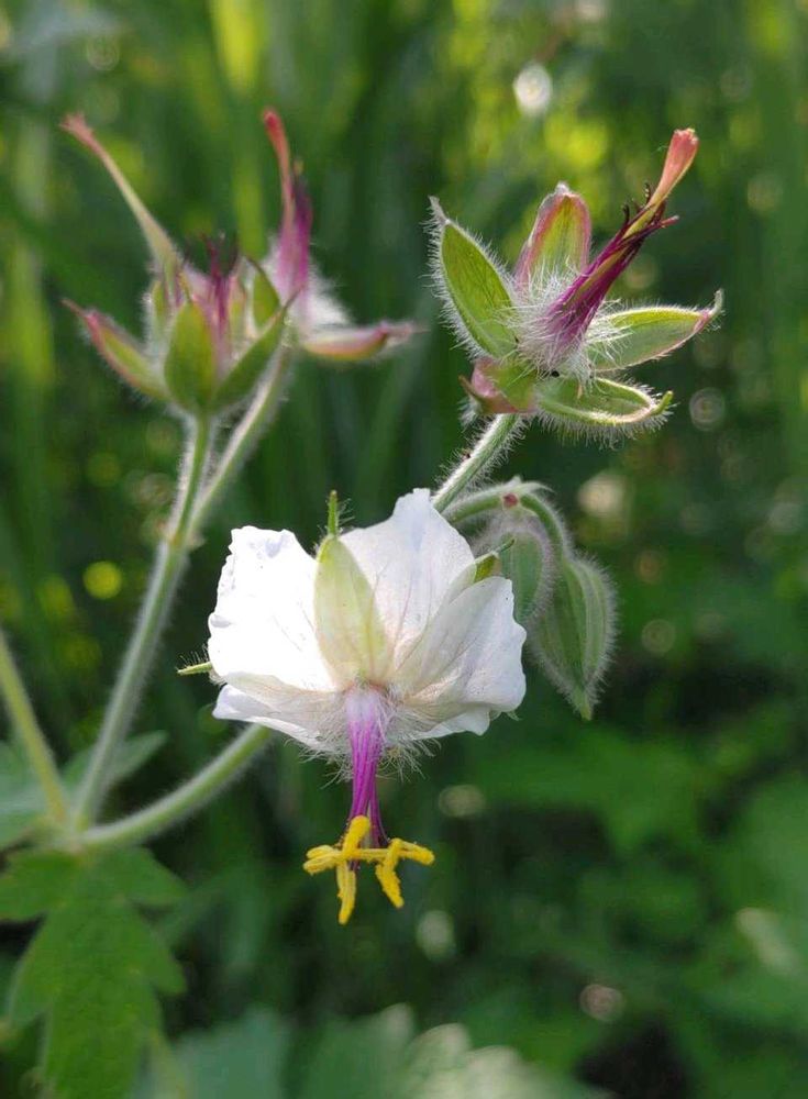 ②③④シロバナグンナイフウロ…亜高山帯の草原に生える草丈40cm程の多年草。枝分かれした先に3cm程のお花をつけ、中央に飛び出した花柱の周囲を取り巻くような雄しべは、とってもユニークな形をしていますね✨🤍🌿