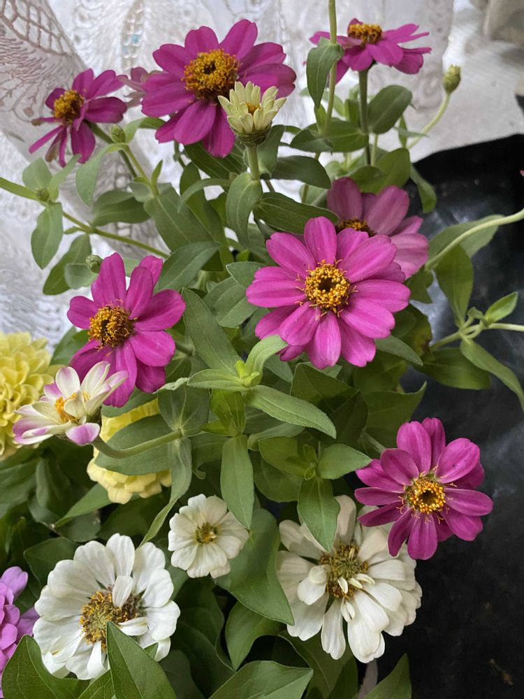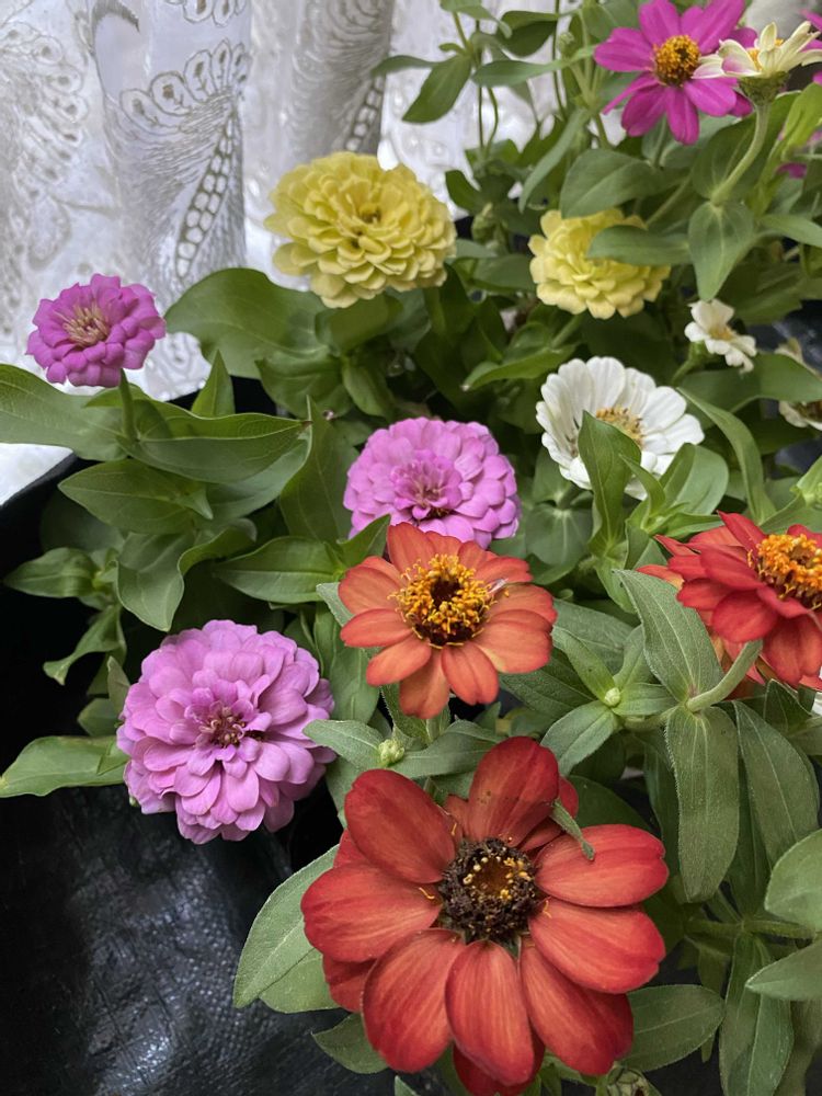 たくさんのジニア、カラーが豊富で夏の暑さに対抗できそうですね☺️