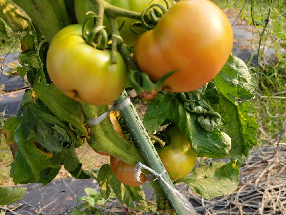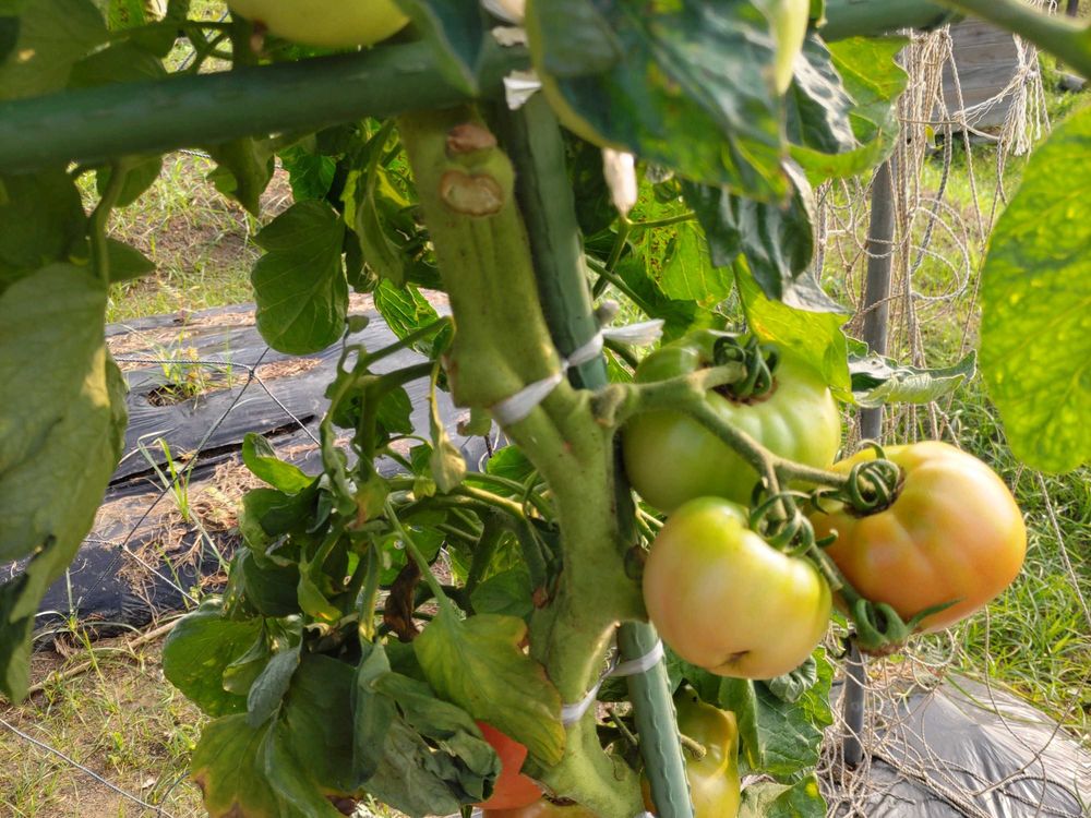 主人の話では、1本の苗から、2.3個位がベスト!で、残りは摘んでしまう。1番最初の枝の先端は切る。畑から飛び出してる先端は切る。そのくらいかな?と言ってました🙆✌️💓。