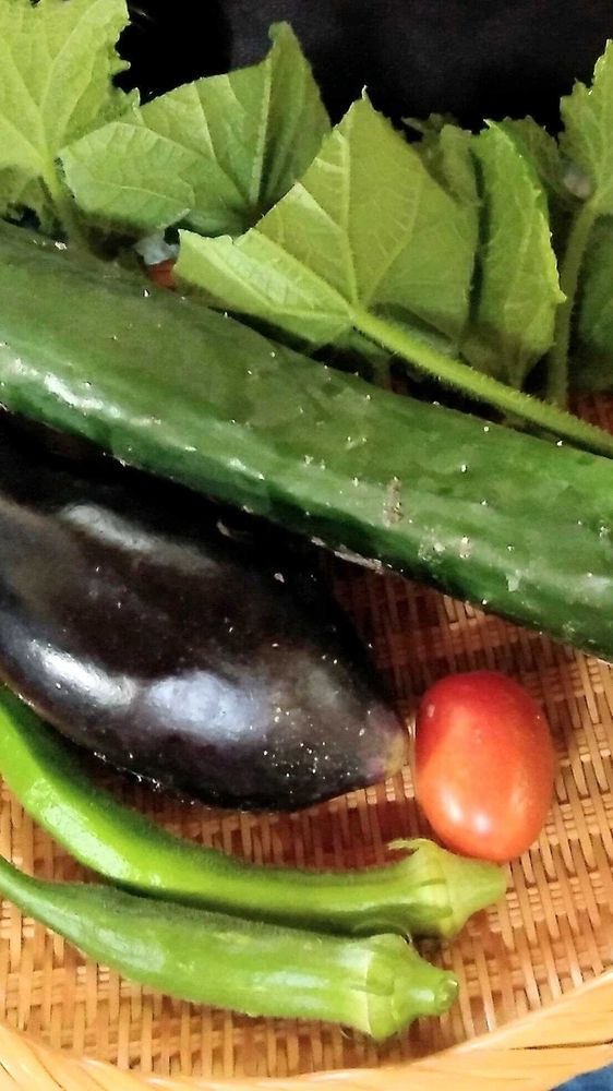 朝取った野菜をお弁当へ新鮮だぁ〜🍱💪くれぐれも熱中症に中ですね⚠️