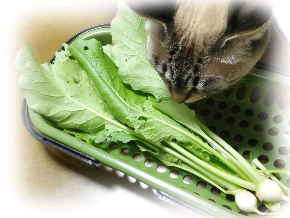 ②間引いた小蕪が気になるお鈴ちゃんのどたま