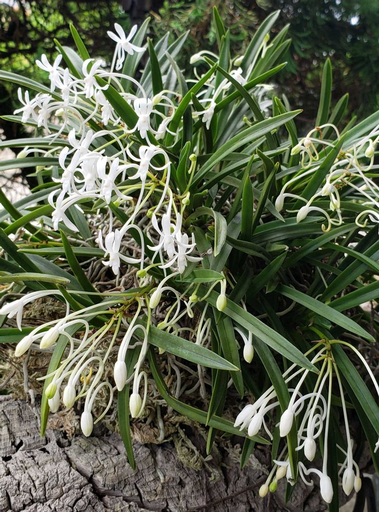 ①4月末にコルク板に水苔、麻紐で縛り着けたらたくさん咲いてくれました。
