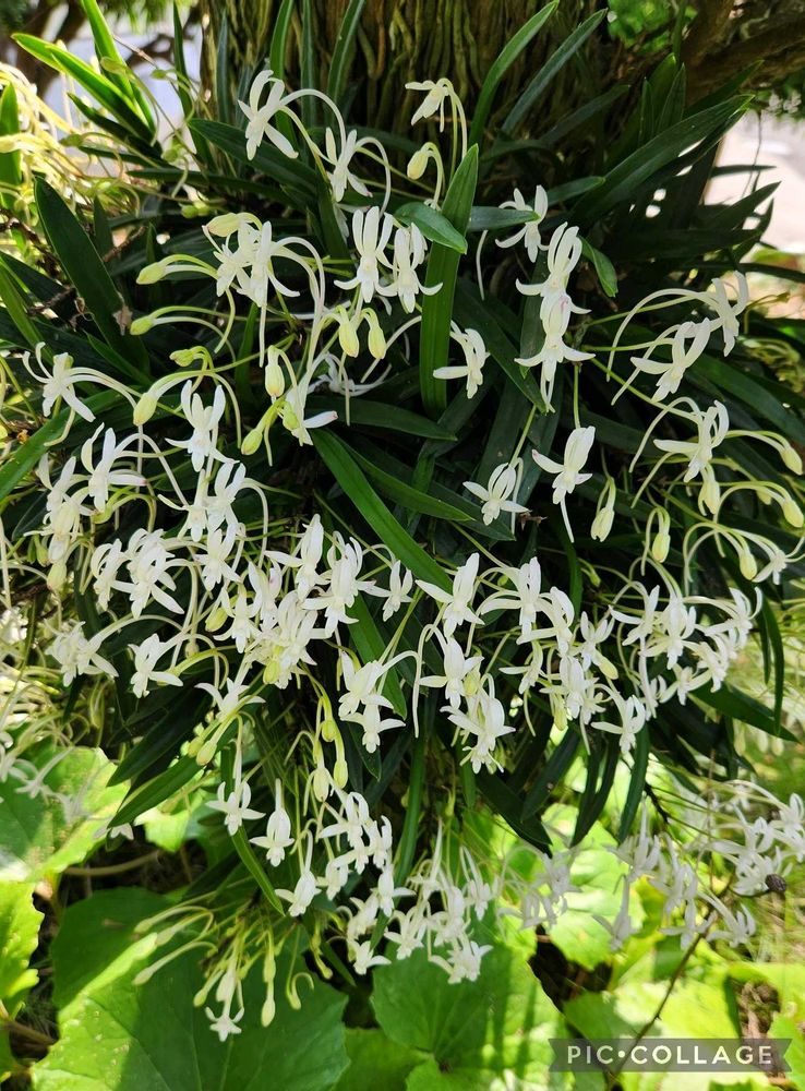 「生きた木に着けたフウランは植え替えしなくても勝手に咲いてくれる」と教えてくれますが、我が家の槇の木はまだヒョロヒョロ😵