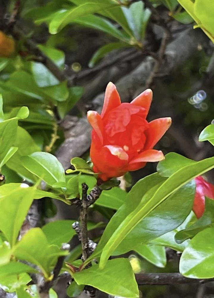 ザクロは木もお花もも見たことがありませんでした。真っ赤なお花なのですね。