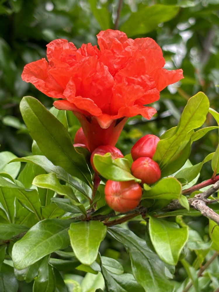 3️⃣4️⃣先ほど朝散歩でザクロ見て来ました。花はもうほとんど終わりかけで実になっているものが多かった。