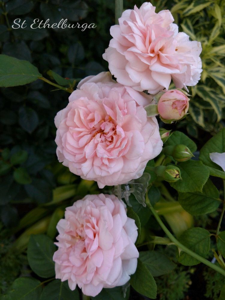 ②セントエセルブルガ(バーガ⁉️)🌹 横広で枝伸ばすわ〜😅 地植えにしてどう仕立てようか❓ なかなか可愛い❤