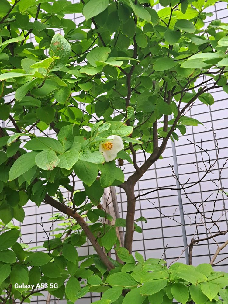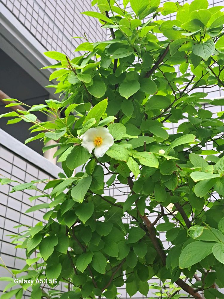 夏ツバキ。6月27日の「今日のお花」でしたが、今日みたら咲いていました😆