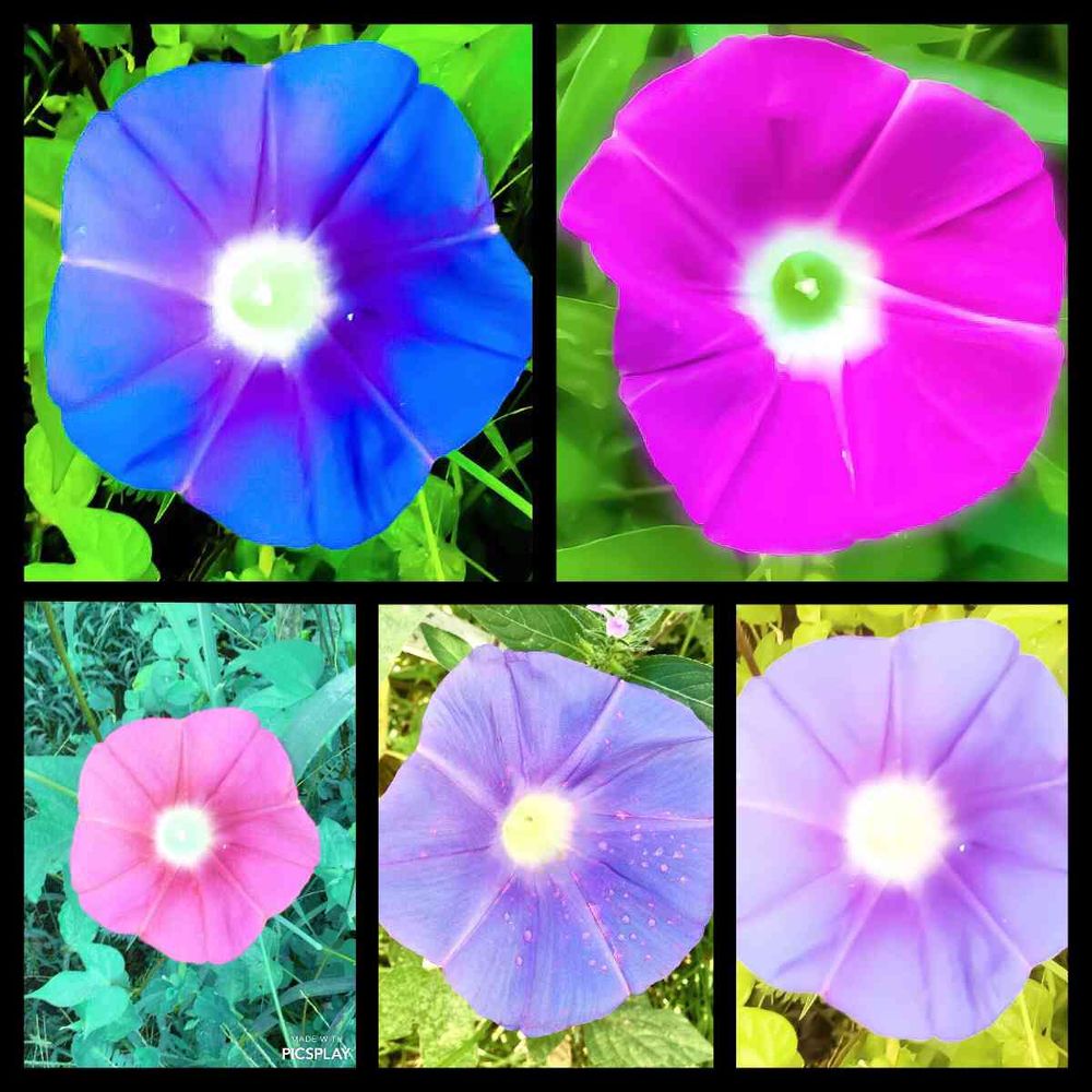 野生化した朝顔が2色咲くことはありますが何もしてませんが今年は多くの色が咲きました。